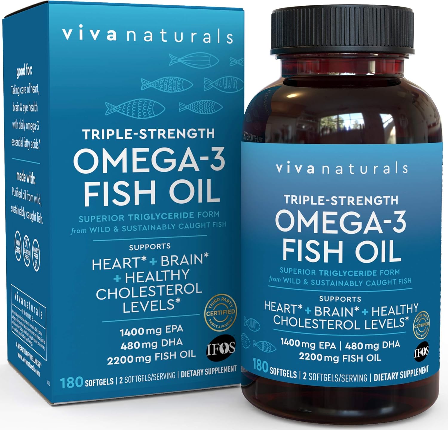 TRIPLE-STRENGTH FISH OIL – GET 3X MORE OMEGA-3 FISH OIL PER SERVING – Unlike other wild fish oil pills, we concentrate our pharmaceutical grade fish oil without the use of heat or chemicals. The result is a triple strength omega 3 fish oil supplement of exceptional quality and potency. Each serving delivers 3X more omega-3s per serving than you would get with many leading supplements. Each daily serving provides you 2,200 mg of fish oil, including 1,400 mg of EPA and 480 mg of DHA.