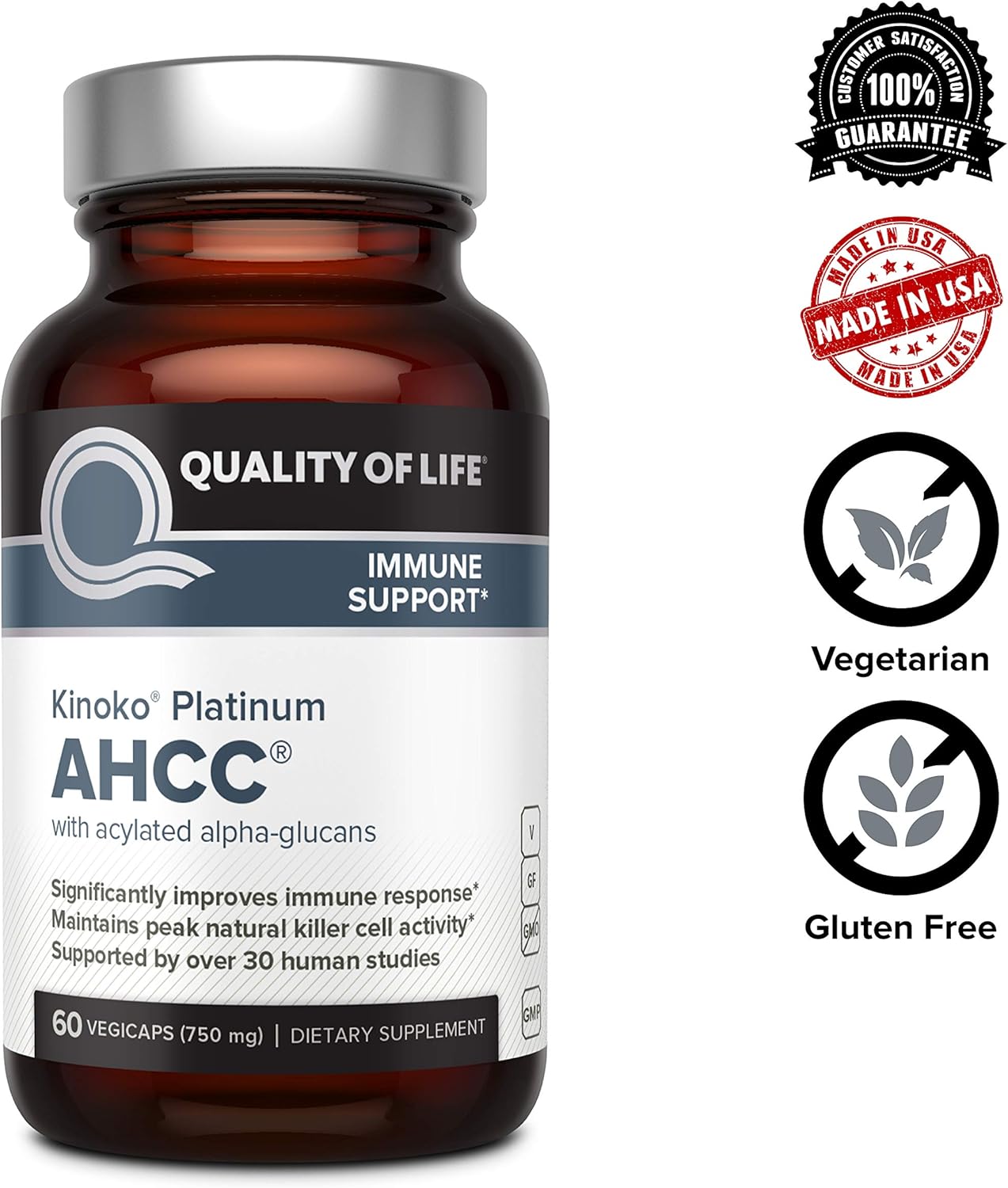 THE WORLD’S LEADING IMMUNE HEALTH SUPPLEMENT: Quality of Life’s AHCC (with Acylated Alpha-Glucans) supplement is a proprietary blend of mushrooms designed to help support immune health, maintain optimal T-cell and natural killer cell activity and is used by over 1,000 clinics worldwide.